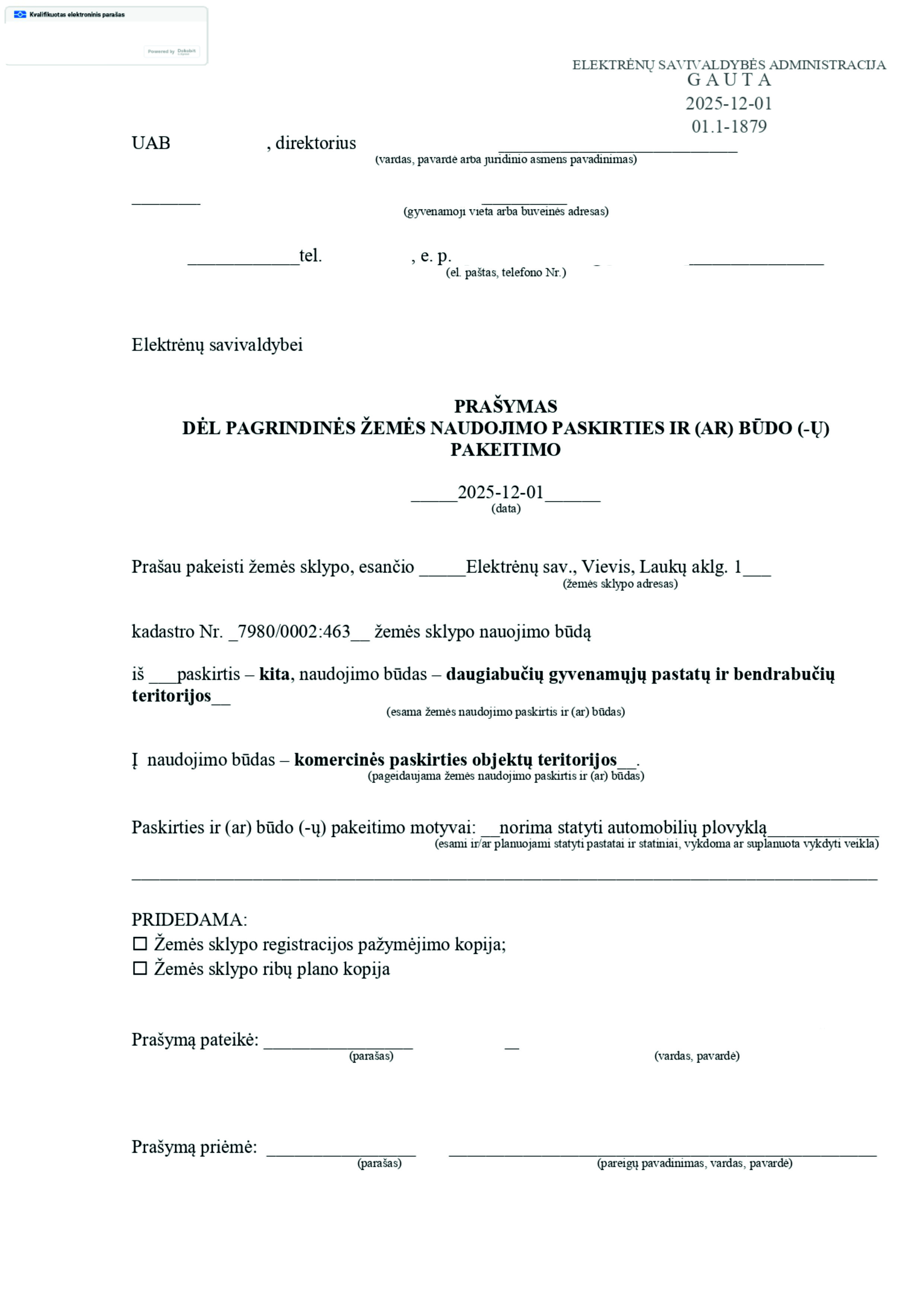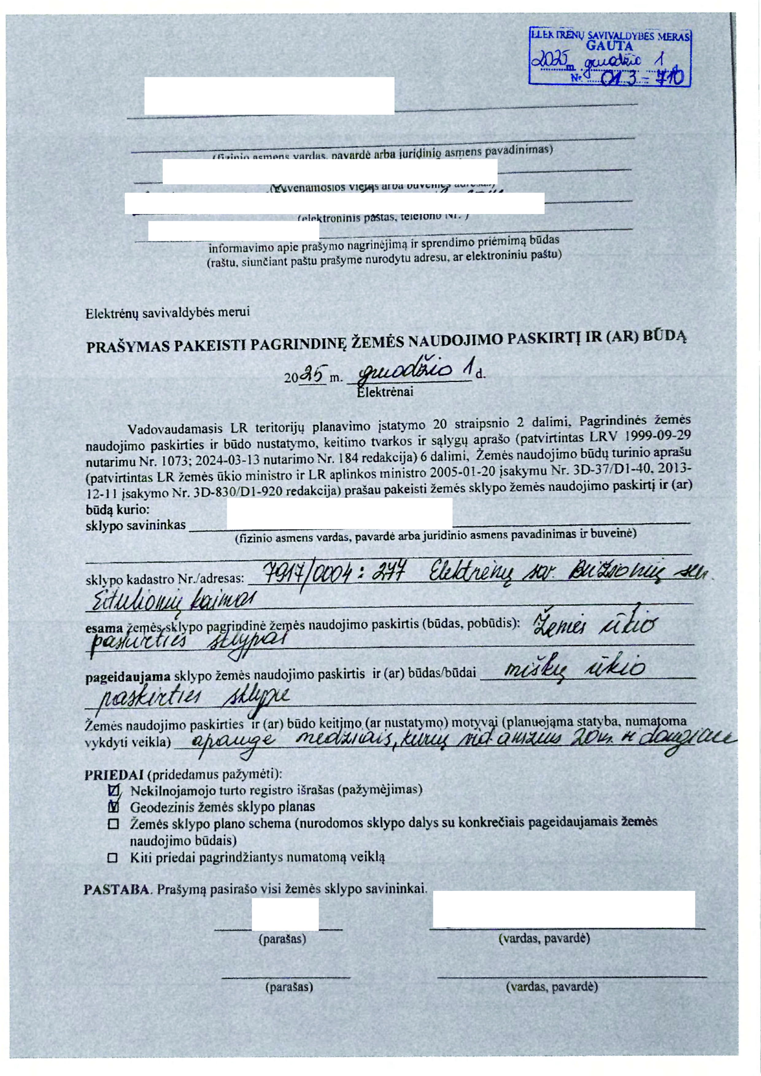 Potvarkis Elektrėnų savivaldybė - Prašymai pakeisti/nustatyti žemės sklypo pagrindinę žemės naudojimo paskirtį ir (ar) naudojimo būdą (elektrenai.lt)